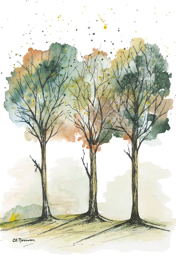 View Full We Three Trees Fall Trees Watercolor Trees Art Trees Etsy