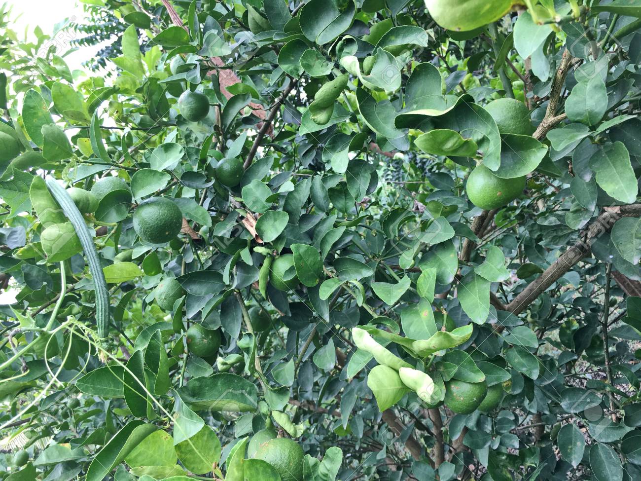View Full Fresh Green Lemons From Lemon Tree In Garden Stock Photo Picture